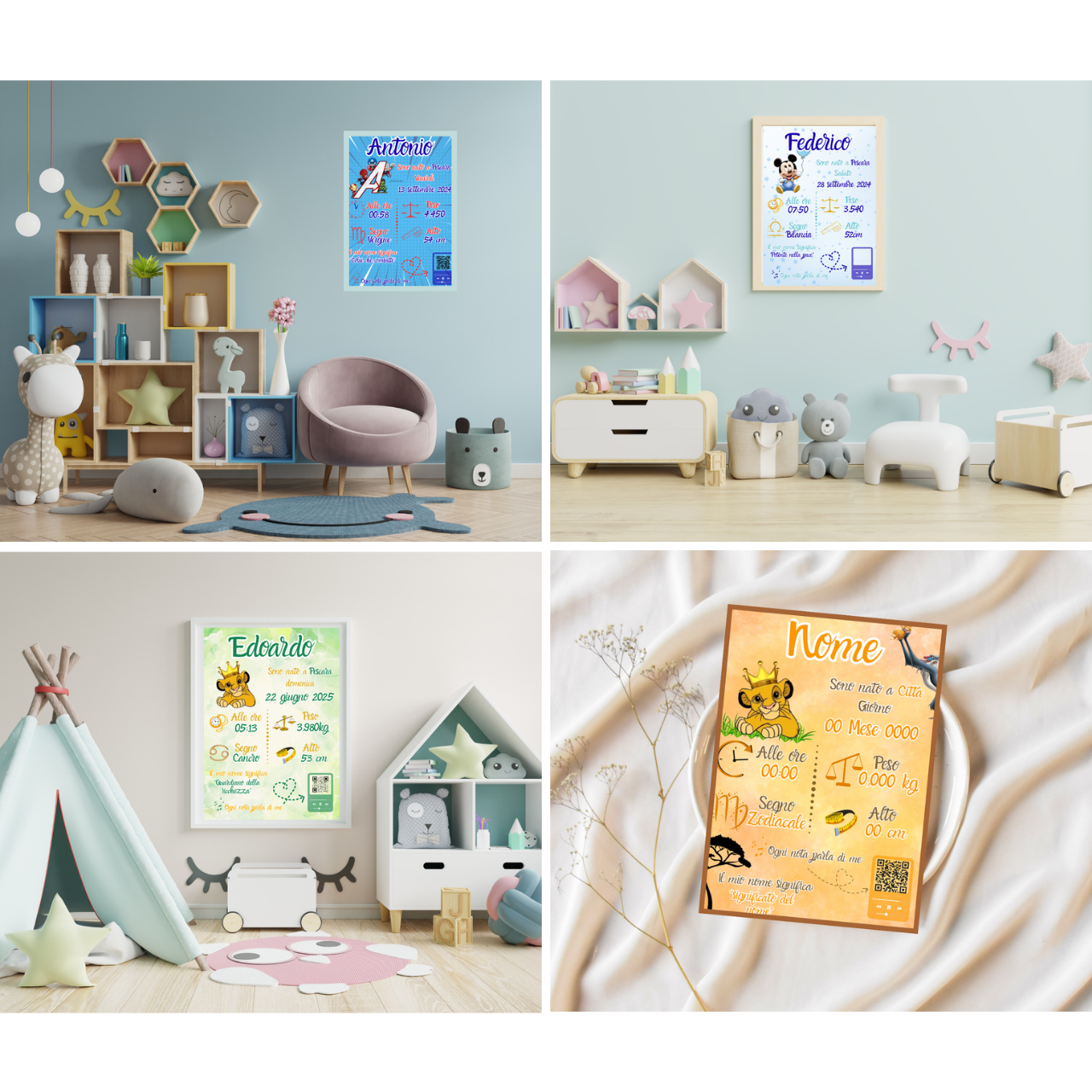 La versione dei "Ricord'Arte BirthFrame" da noi spedita è solo in formato A4, mentre la versione "Digital" è stampabile in qualsiasi formato si voglia.